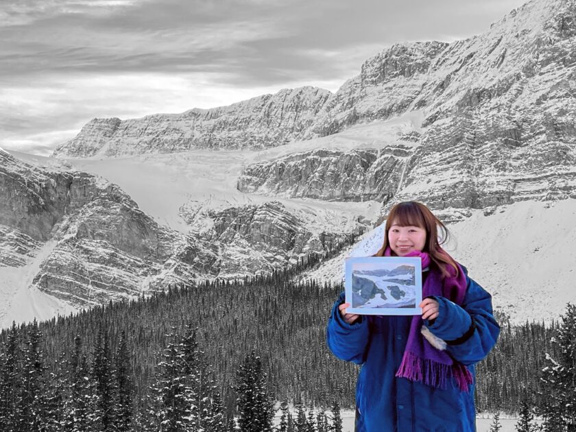 静かに広がる氷原と山のコントラストが、バンフ冬旅のハイライトです。