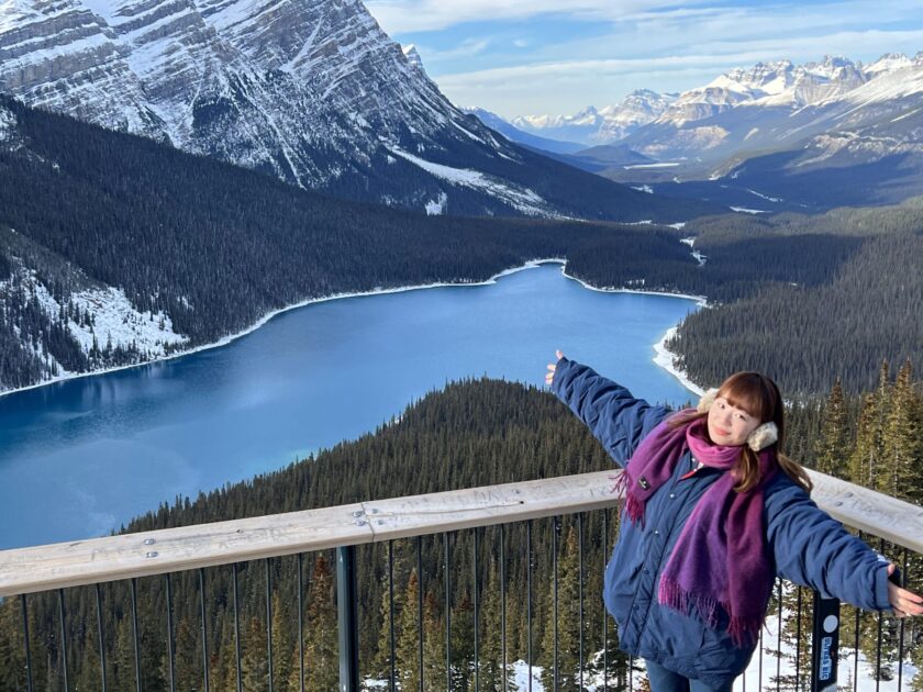 バンフらしい雄大な自然と、冬の静けさが同時に感じられる絶景スポットです。